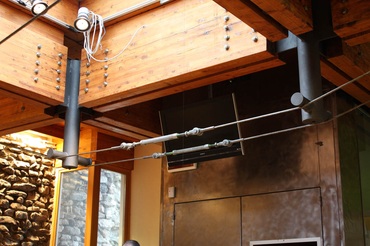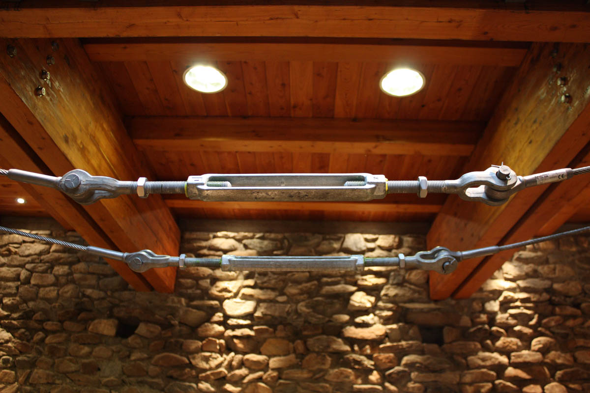Il rinforzo è stato realizzato mediante la post-tensione di un corrrente teso inferiore in funi di acciaio armonico posto a distanza di 78 cm rispetto all’asse baricentrica della trave in legno esistente.